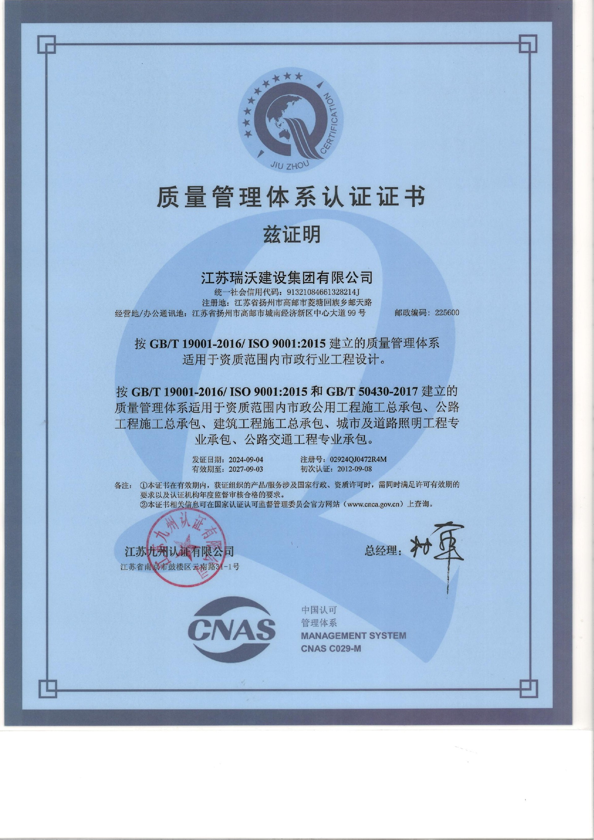 江蘇瑞沃建設(shè)集團(tuán)有限公司成立于2007年,是一家以市政、交通工程建設(shè)為主導(dǎo),集房屋建筑、交通安全設(shè)施、城市道路照明工程、電力工程、隧道工程、航道工程及投融資為一體的綜合性企業(yè)。企業(yè)注冊資本60000萬元,現(xiàn)有各類技術(shù)人員580人,其中中、高級以上人員498人,注冊類人員268人,一、二級建造師166人。公司榮獲“江蘇省建筑業(yè)優(yōu)秀企業(yè)”、“江蘇省五一勞動獎狀”,連續(xù)多年被評為“揚(yáng)州市先進(jìn)企業(yè)”、“江蘇省建筑業(yè)百強(qiáng)企業(yè)”,連續(xù)八年蟬聯(lián)百強(qiáng)企業(yè)基礎(chǔ)設(shè)施類第一名。